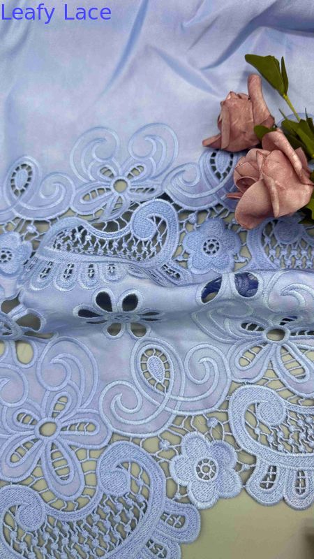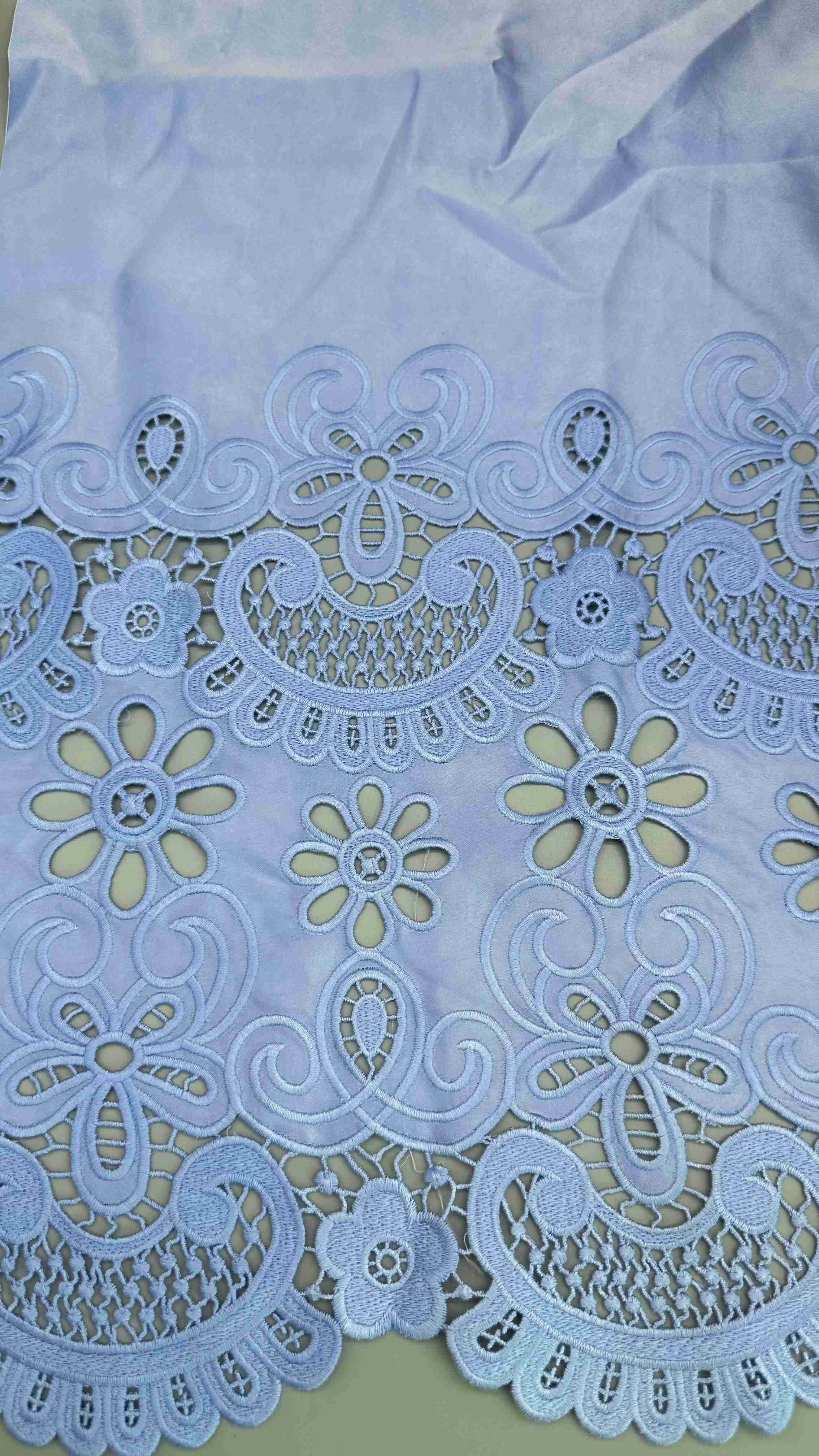 نسيج طلاء مقطوع بالليزر الأزرق الخفيف Poly Grpund نسيج عيني مطرز للعلامات التجارية للملابس