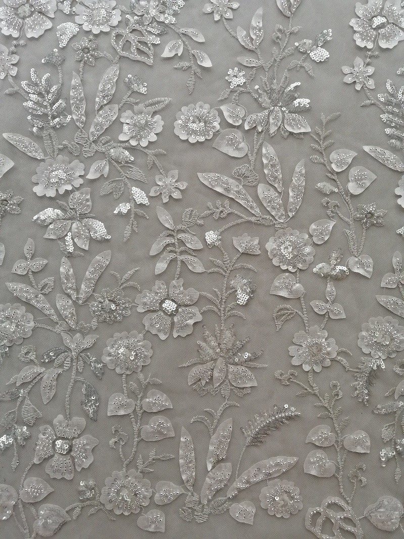 تطريز شبكي أبيض دقيق لفستان زفاف السيدة