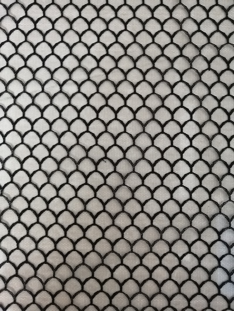 - نسيج شبكي من التول البوليستر الأسود يمكن أن يلبي متطلبات OEKO-Tex Standard 100.