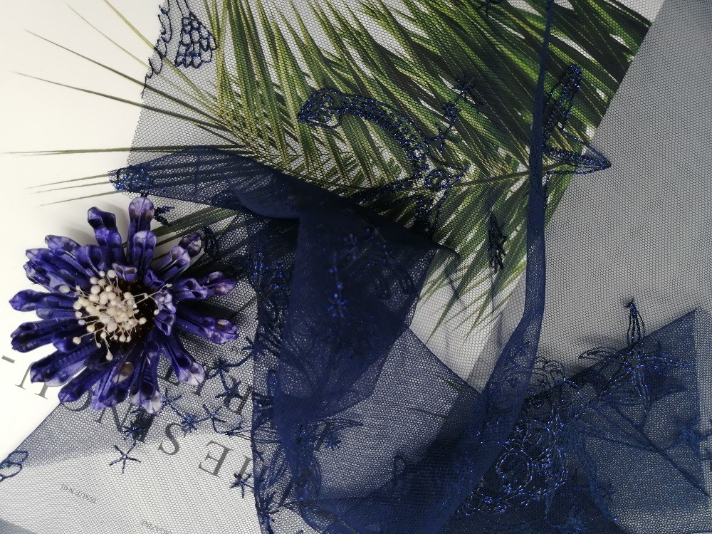 قماش شبكي من الدانتيل المطرز لحيوانات البحر باللون الكحلي للنساء فستان طويل التنورة ملابس الفتيات الصغيرات والمنسوجات المنزلية والستائر ومواد الفراش والملابس والقبعات وفساتين الزفاف والبلوزات ، إلخ.