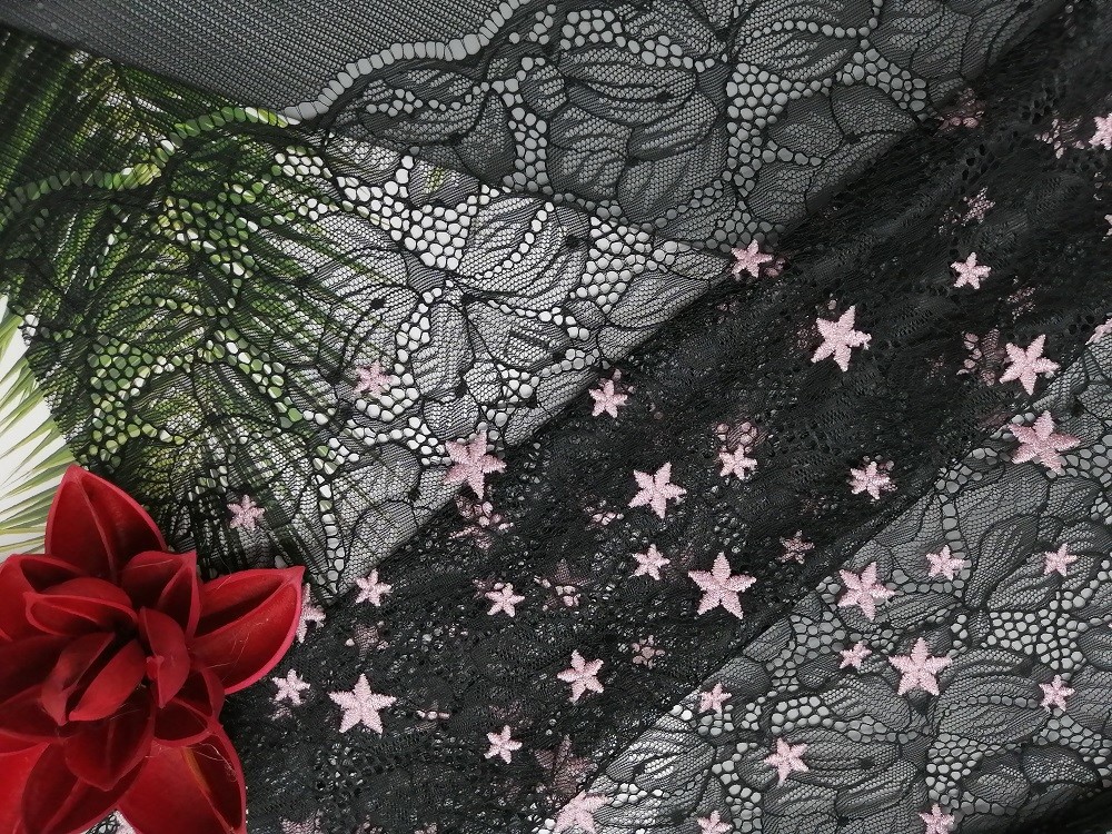الوردي نجمة نمط مطرز أقمشة الدانتيل لسيدة الملابس المنسوجات المنزلية فستان الفتيات الصغيرات
