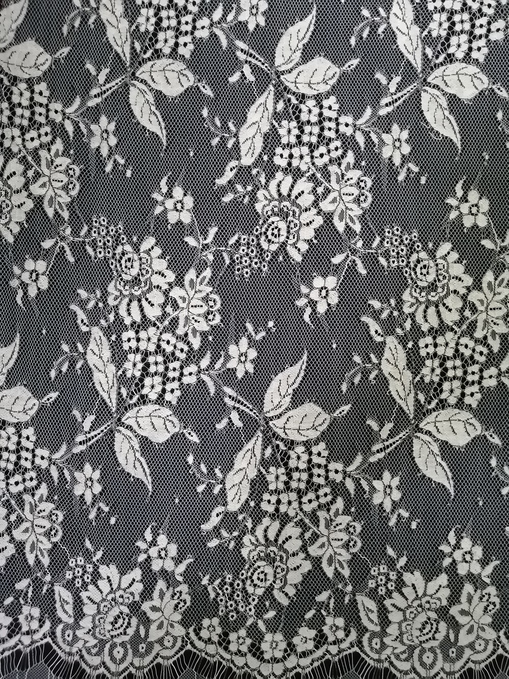 - قماش دانتيل شانتيلي باللون الأبيض والأسود باللون الأبيض الناعم للسيدة والمنسوجات المنزلية لملابس الفتيات الصغيرات تلبية متطلبات معيار OEKO-Tex 100.