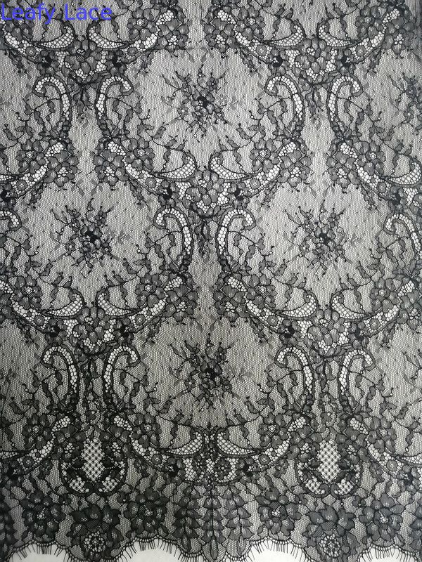 أسود تول دانتيل دانتيل شانتيلي فرنسي نسيج دانتيل منظم