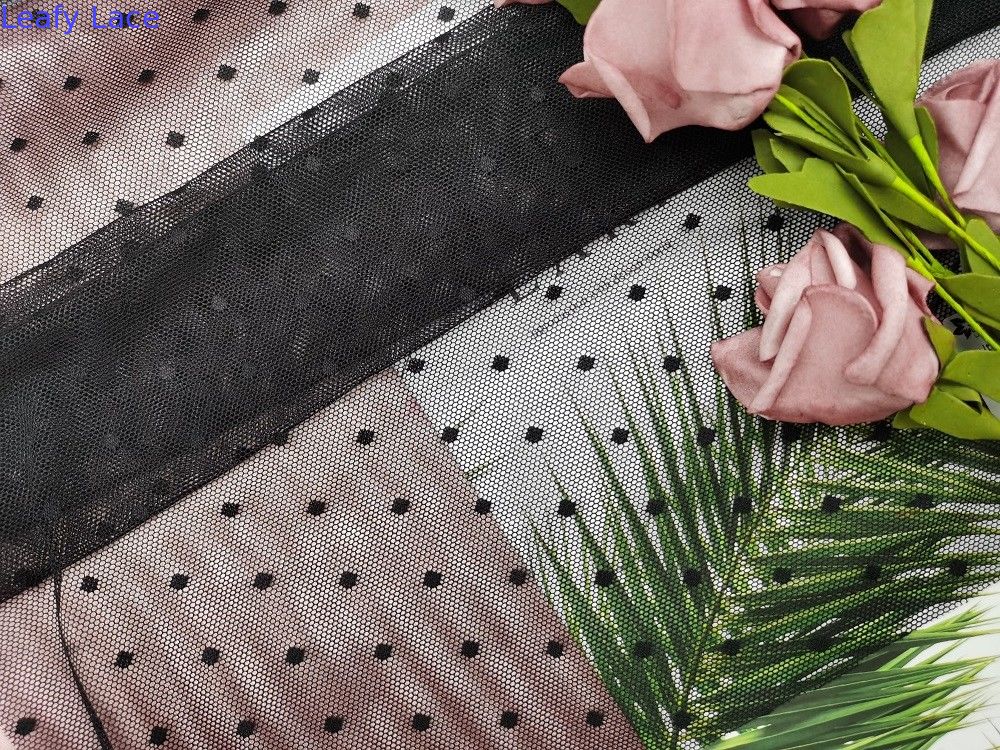 - قماش دانتيل مطاطي ناعم شبكي مرن أسود من البولكا من أجل فستان سهرة ماركات ملابس سيدة فستان فتاة صغيرة يمكن أن يفي بمتطلبات OEKO-Tex Standard 100.