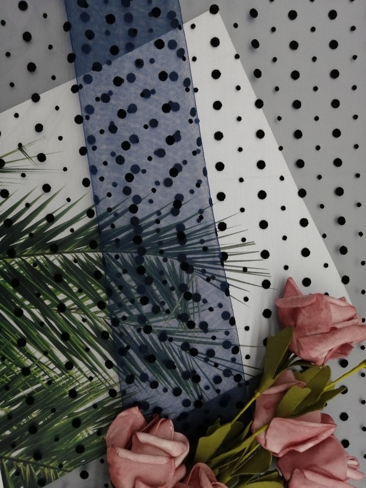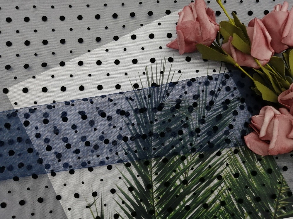 - قماش شبكي منقط باللون الكحلي متدفق من قماش التول متدفق من نسيج شبكي للسهرة فستان نسائي فستان نسائي فستان فتاة صغيرة يمكن أن تفي بمتطلبات OEKO-Tex Standard 100.