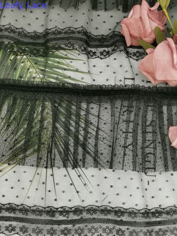 أسود دوت احباط الطباعة تول شبكة مطوي نسيج الدانتيل التجعيد شبكة مكسورة الدانتيل