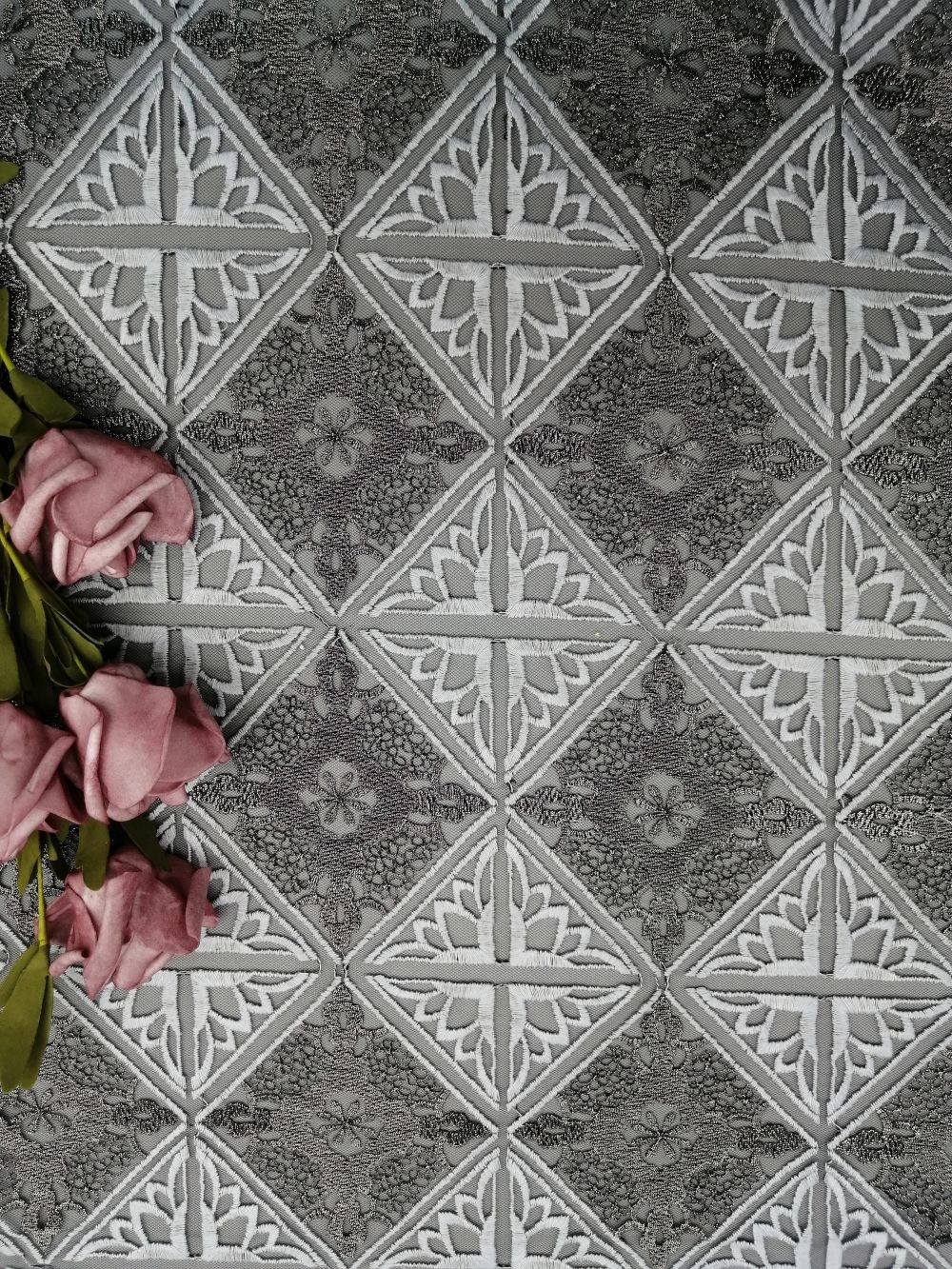 إبراز: | نسيج الدانتيل المطرز بالماس Geo,قماش الدانتيل المطرز OEKO TEX |