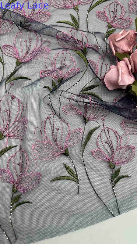 زهرة التوليب الدانتيل النسيج والتطريز الملون سيدة اللباس المنسوجات