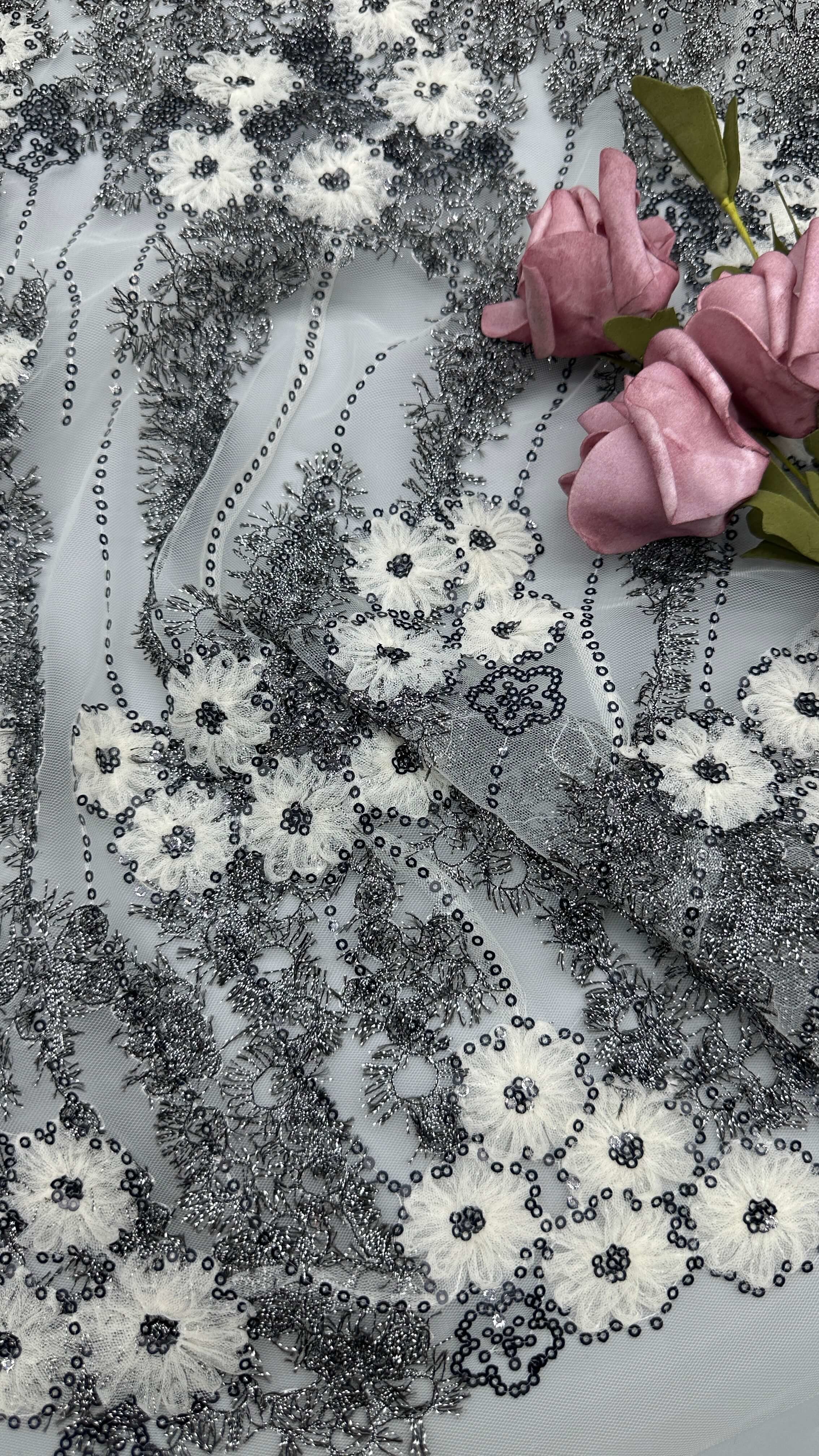 إبراز: | نسيج القص المعدني المطرز,نسيج الدانتيل المعدني عالي الجودة,نسيج رقائق معدنية أنيق,High Quality Metallic Lace Fabric,Elegent Metallic Lace Fabric |