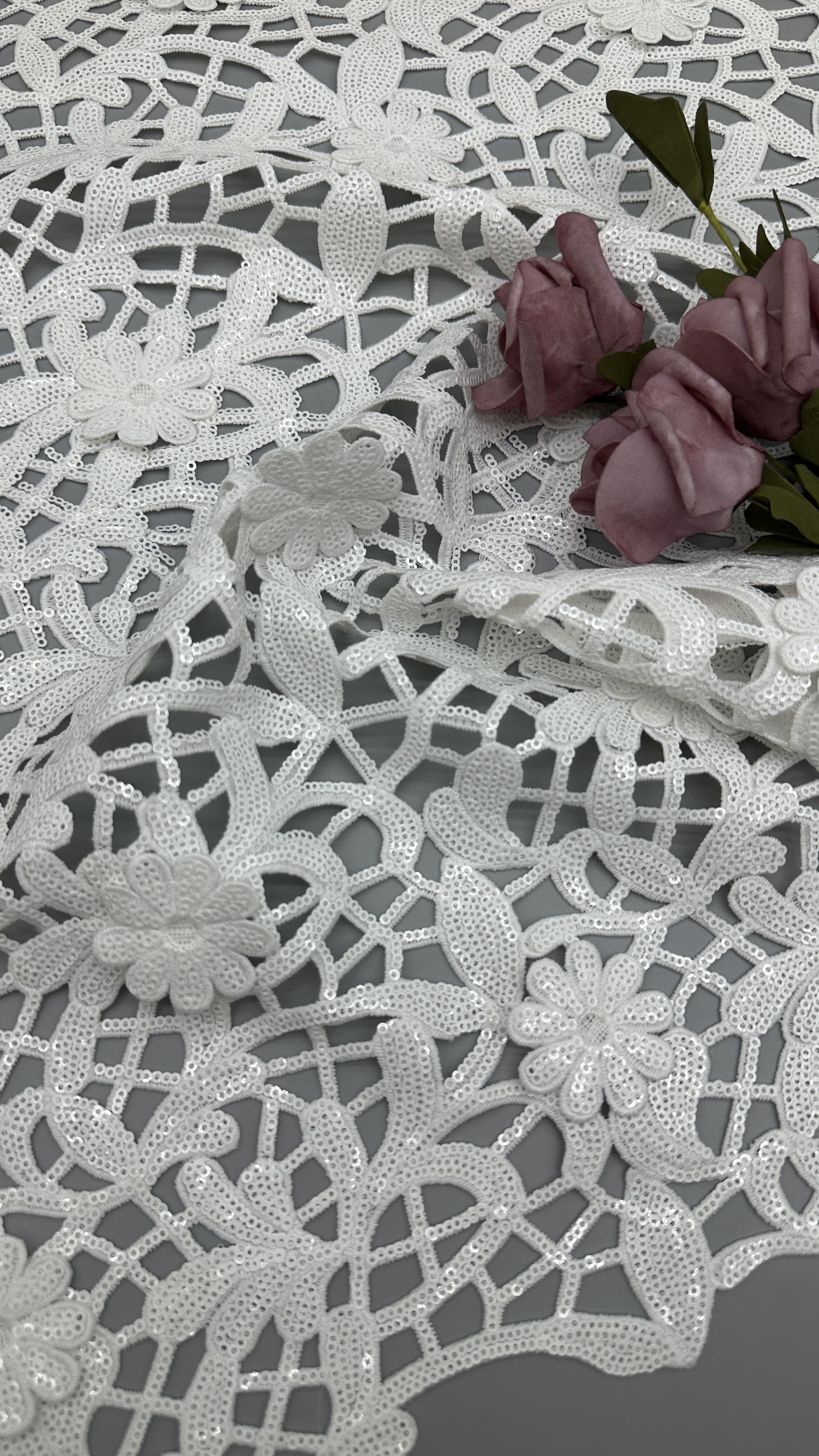 إبراز: | نسيج البصل,نسيج البنطال الأبيض المطرز,أوراق فاخرة من النسيج,White Sequin Embroidered Lace Fabric,Leafy Luxury Occasion Lace Fabric |