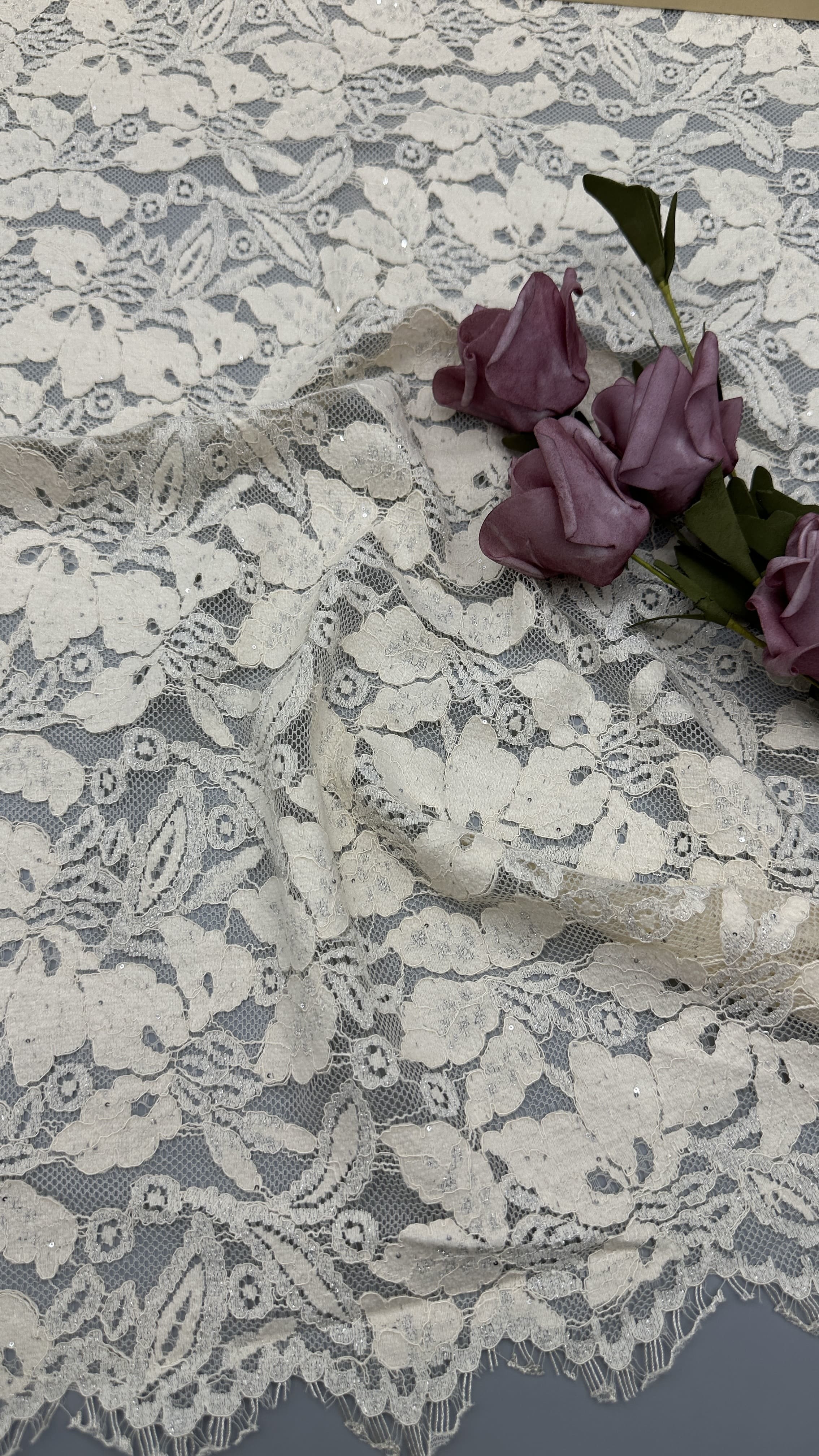 A creative team keeps abreast of trends. The research facilities and production equipment are all advances. Most of our patterns are copyrighted and based on original artwork. Most important is our focus on breakthrough of the techniques that advance the art of lace marking . Additionally, Leafy Lace Carries the enough greige and finished colors to response to our customers’ s rapidly changing needs.