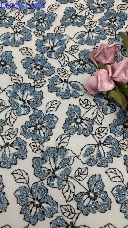 قماش دانتيل مطرز بزخارف أوراق الشجر الرقيقة هو خيار شائع لفساتين الزفاف والحفلات، مما يوفر الأناقة والملمس والتفاصيل المعقدة. تتضمن التكنولوجيا الكامنة وراء إنتاجه مزيجًا من الحرفية التقليدية والابتكارات النسيجية الحديثة.