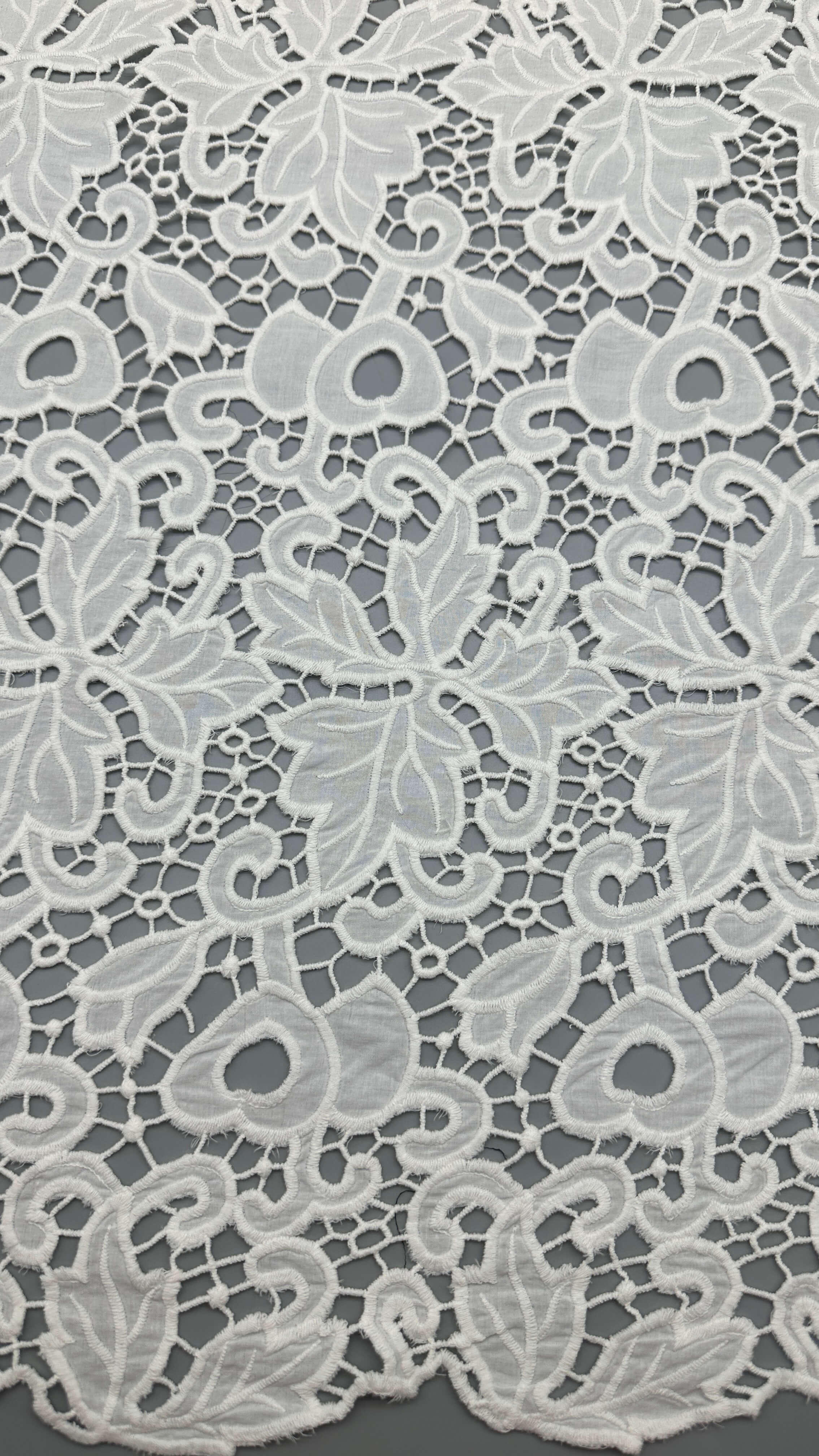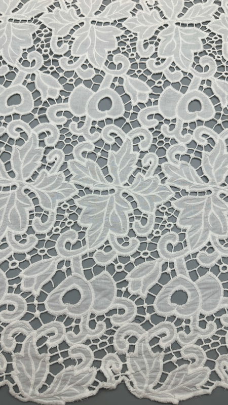 قماش دانتيل مطرز بزخارف أوراق الشجر الرقيقة هو خيار شائع لفساتين الزفاف والحفلات، مما يوفر الأناقة والملمس والتفاصيل المعقدة. تتضمن التكنولوجيا الكامنة وراء إنتاجه مزيجًا من الحرفية التقليدية وابتكارات المنسوجات الحديثة.